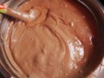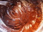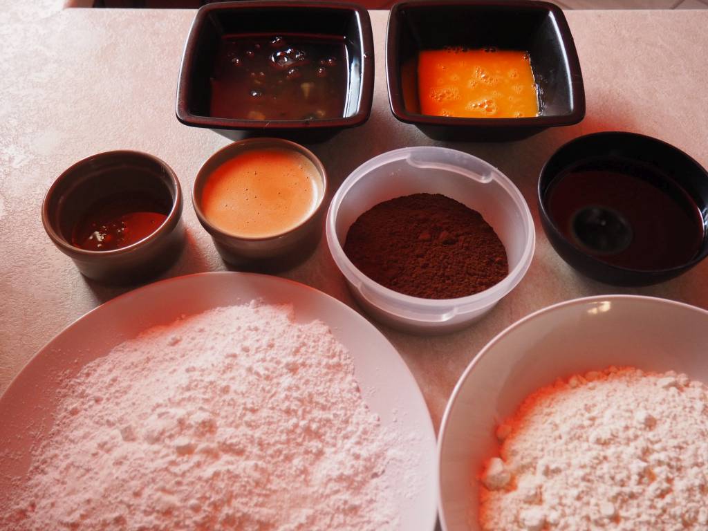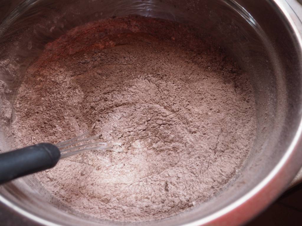 Setacciare in una ciotola la farina con il lievito, il cacao, lo zucchero a velo e il sale. In una brocca emulsioniamo con una forchetta l’olio con il miele e il caffè. Versare poi sulle polveri e mescolare bene con una frusta. Inserire i tuorli e mescolare.
