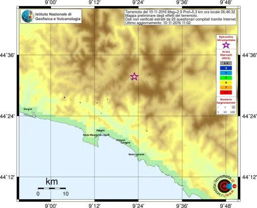 Lieve scossa di terremoto alle 06:46:32 di magnitudo 2.9 nel Genovese, più precisamente a Rezzoaglio, paese vicino a Santo Stefano D’Aveto.