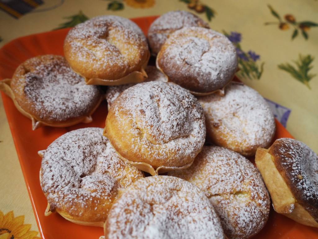 Al momento di consumarle spolverizzate con zucchero a velo oppure glassare con acqua zucchero e limone.