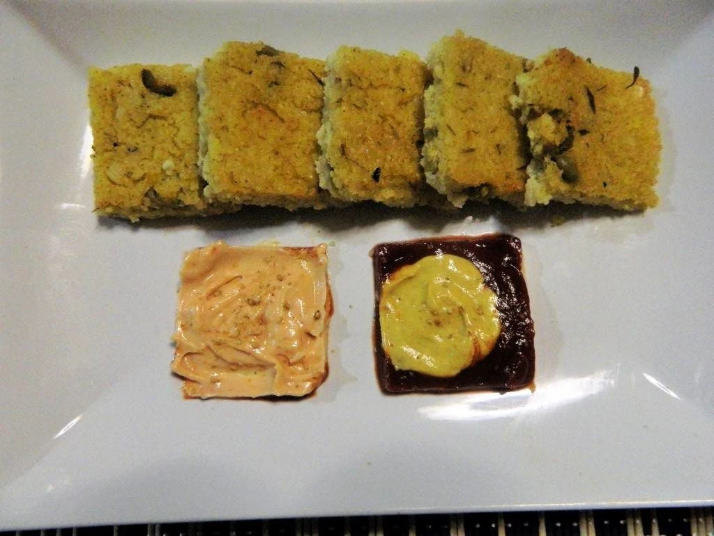 Lavare il miglio, dopodiché in un pentola rosolare la cipolla tritata, dopo un minuto unire le mandorle precedentemente tritate e il cereale, rosolare per qualche secondo, infine unire l’acqua e il brodo vegetale, lasciar bollire per cica 15/20 minuti con coperchio. Il miglio è cotto quando ha assorbito tutta l’acqua. Togliere dal fuoco , unirvi le olive tagliate, le scorze di limone grattugiate e il timo/aromi. Stendere il miglio su una teglia ricoperta con carta da forno, spalmare il composto come se fosse polenta, ricoprire con un altro foglio di carta da forno ed eventualmente livellare con le mani.