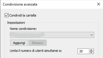 Queste impostazioni consentono la condivisione con la rete, dei vostri file o cartelle.