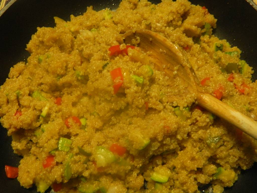 La quinoa sarà pronta quando avrà assorbito tutta l’acqua (attenzione a non farla attaccare alla pentola, deve risultare cremosa). Unire le verdure alla quinoa aggiungendo olio e tamari, servire . (a piacere aggiungere spezie ed aromi di stagione).