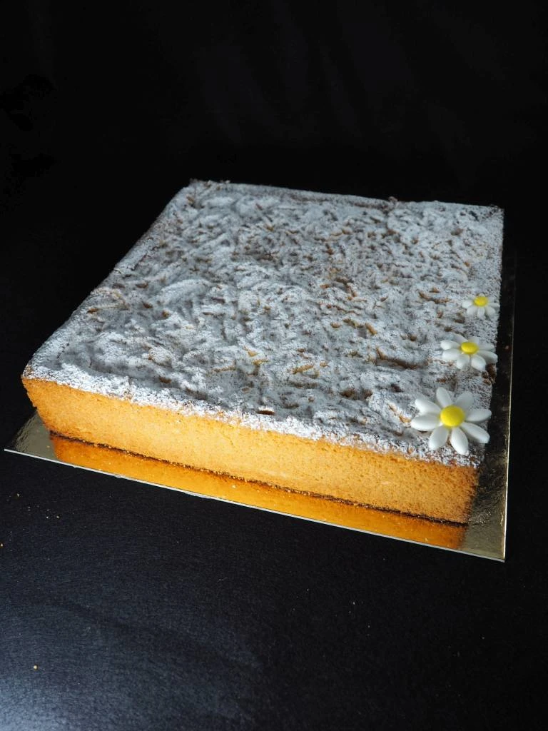 ¾ vi serviranno per fare la base della torta e ¼ vi servirà per grattugiarla e metterla sopra dopo la crema.